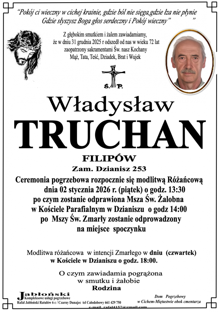 Podhale24.pl zastrzega sobie prawo do nie publikowania wspomnień, w szczególności tych nie związanych z profilem działu nekrologi, zawierających wulgaryzmy, wzywających do zachowań niezgodnych z prawem, obrażających osoby publiczne i prywatne, obrażających inne narodowości, rasy, religie itd, oraz te, bez możliwości telefonicznej lub mailowej weryfikacji ich autora.