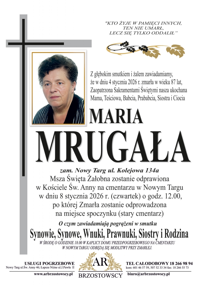 Podhale24.pl zastrzega sobie prawo do nie publikowania wspomnień, w szczególności tych nie związanych z profilem działu nekrologi, zawierających wulgaryzmy, wzywających do zachowań niezgodnych z prawem, obrażających osoby publiczne i prywatne, obrażających inne narodowości, rasy, religie itd, oraz te, bez możliwości telefonicznej lub mailowej weryfikacji ich autora.
