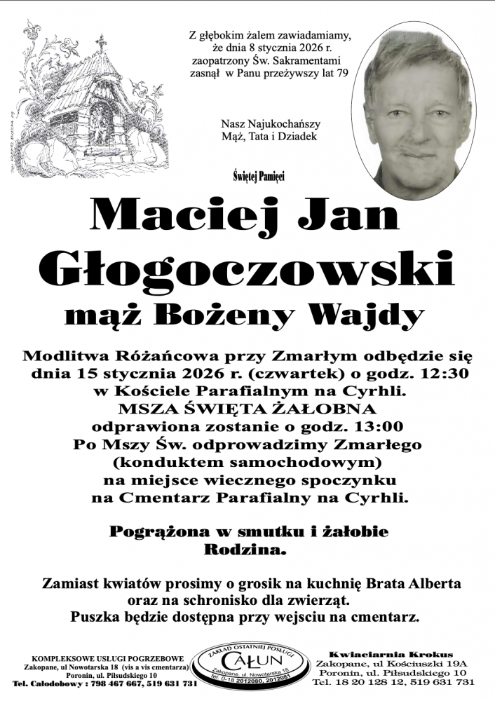 Maciej Jan Głogoczowski - Nekrologi - podhale24.pl