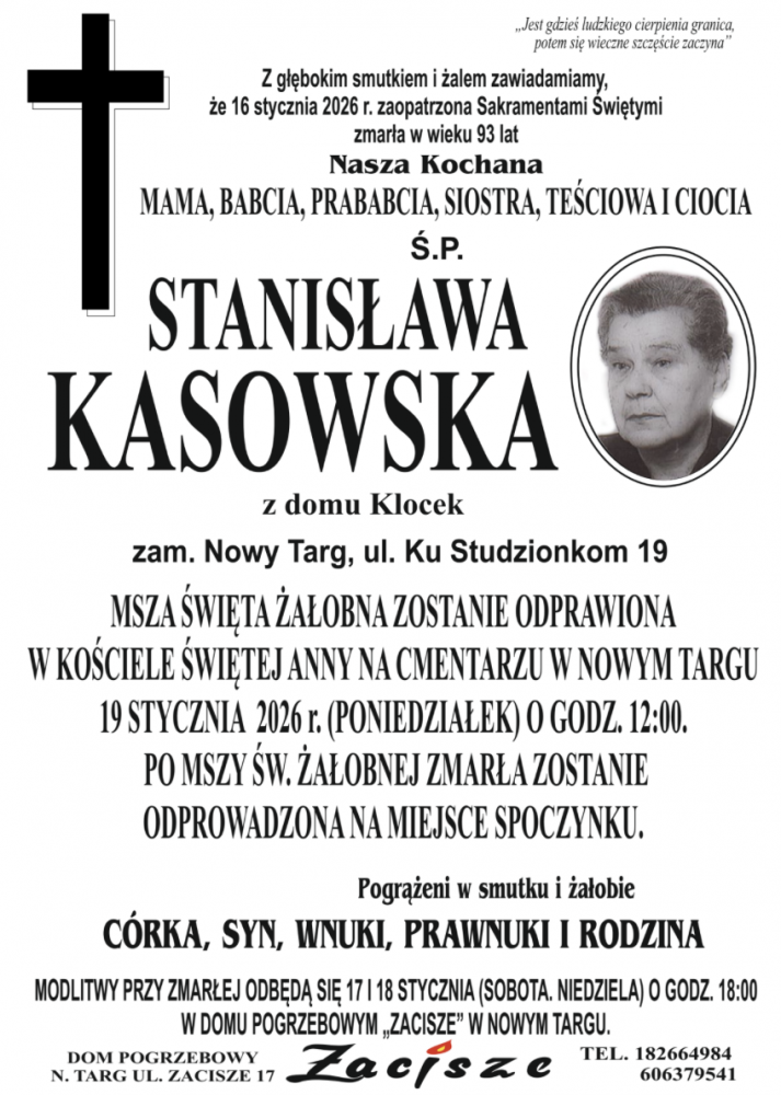 Stanisława Kasowska - Nekrologi - podhale24.pl