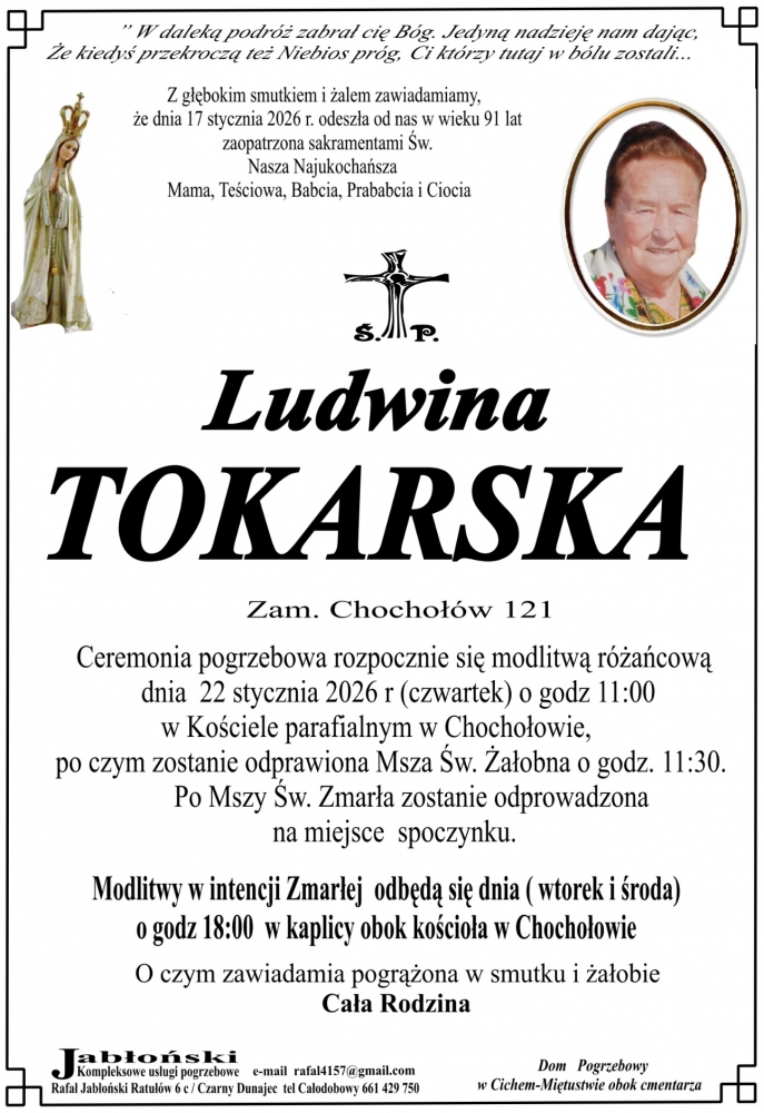 Ludwina Tokarska - Nekrologi - podhale24.pl