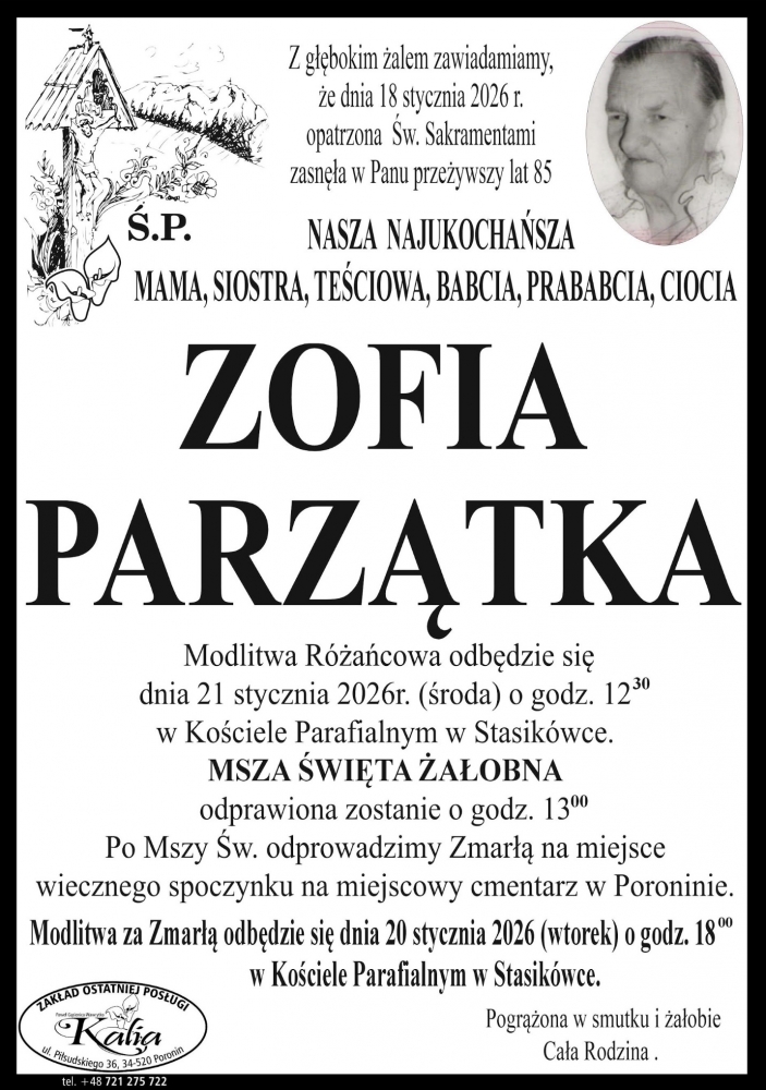 Zofia Parzątka - Nekrologi - podhale24.pl