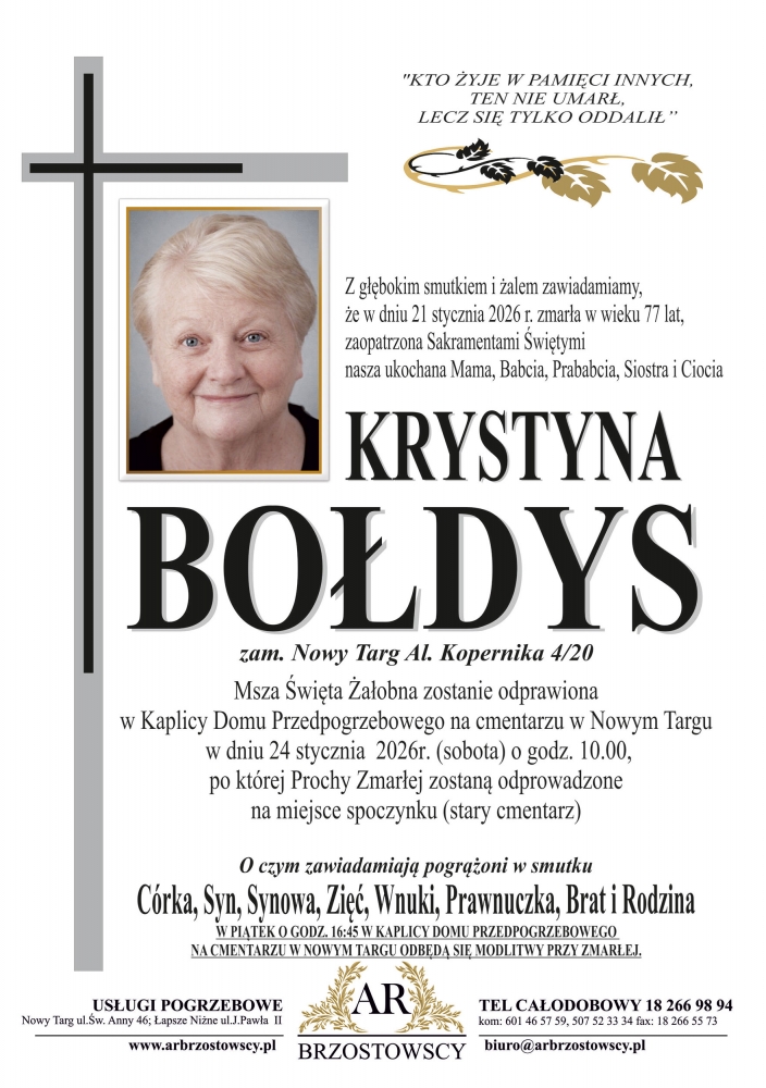 Krystyna Bołdys - Nekrologi - podhale24.pl