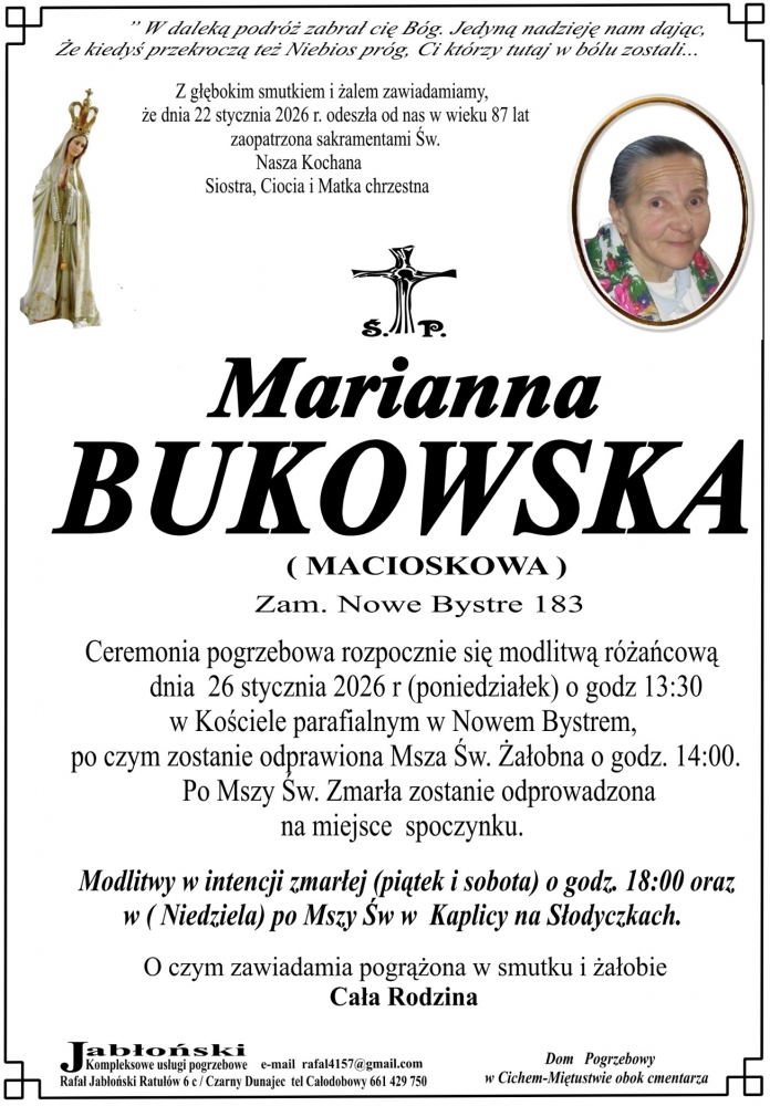 Marianna Bukowska - Nekrologi - podhale24.pl