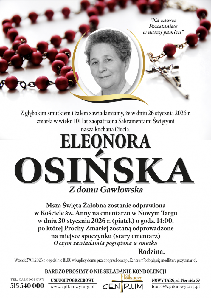 Eleonora Osińska - Nekrologi - podhale24.pl