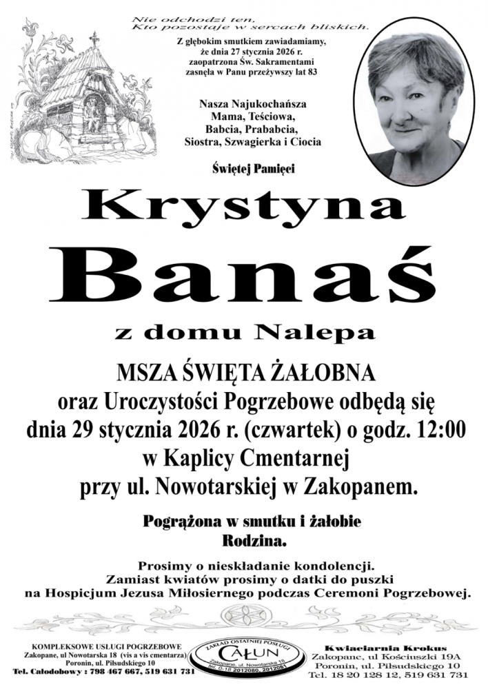 Krystyna Banaś - Nekrologi - podhale24.pl