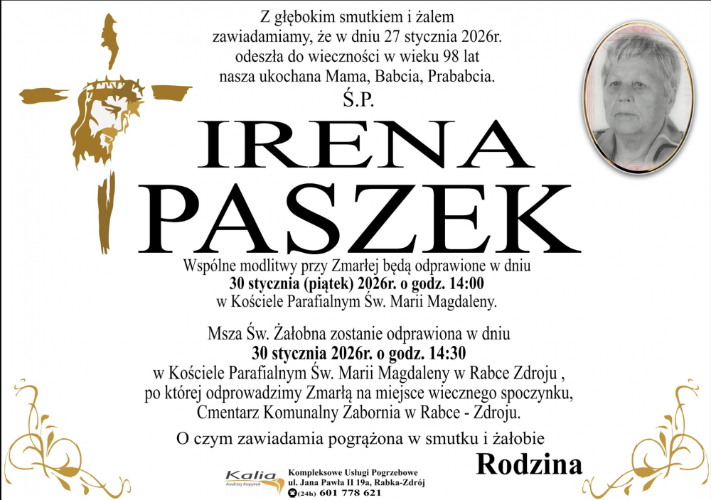 Irena Paszek - Nekrologi - podhale24.pl