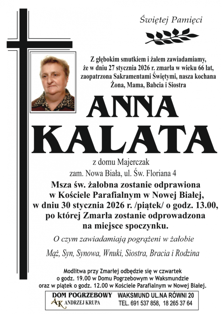 Anna Kalata - Nekrologi - podhale24.pl