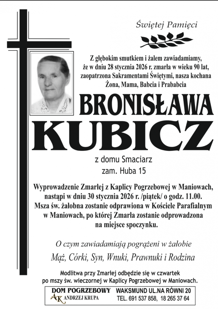 Bronisława Kubicz - Nekrologi - podhale24.pl