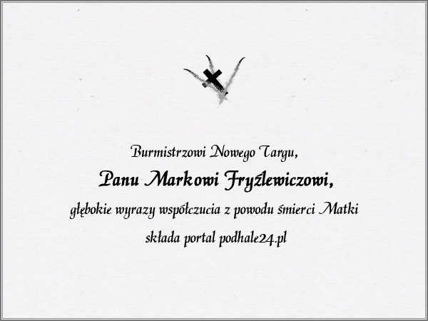 Podhale24.pl zastrzega sobie prawo do nie publikowania wspomnień, w szczególności tych nie związanych z profilem działu nekrologi, zawierających wulgaryzmy, wzywających do zachowań niezgodnych z prawem, obrażających osoby publiczne i prywatne, obrażających inne narodowości, rasy, religie itd, oraz te, bez możliwości telefonicznej lub mailowej weryfikacji ich autora.