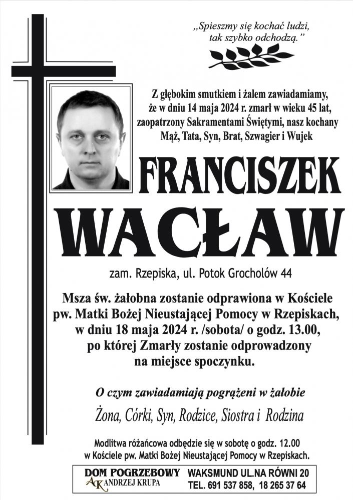 Franciszek Wacław - Nekrologi - podhale24.pl