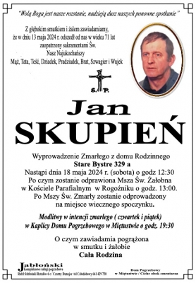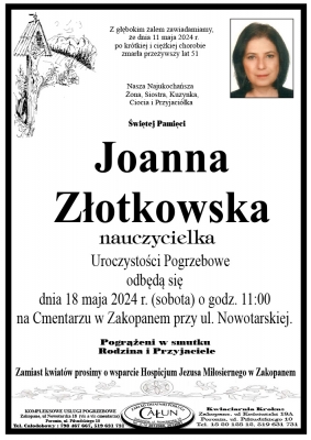 Podhale24.pl zastrzega sobie prawo do nie publikowania wspomnień, w szczególności tych nie związanych z profilem działu nekrologi, zawierających wulgaryzmy, wzywających do zachowań niezgodnych z prawem, obrażających osoby publiczne i prywatne, obrażających inne narodowości, rasy, religie itd, oraz te, bez możliwości telefonicznej lub mailowej weryfikacji ich autora.