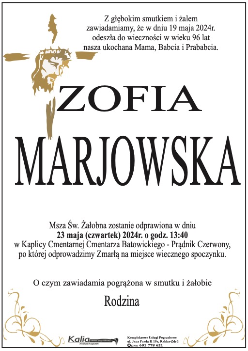 Zofia Marjowska - Nekrologi - podhale24.pl