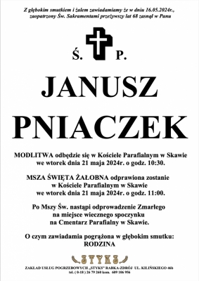 Podhale24.pl zastrzega sobie prawo do nie publikowania wspomnień, w szczególności tych nie związanych z profilem działu nekrologi, zawierających wulgaryzmy, wzywających do zachowań niezgodnych z prawem, obrażających osoby publiczne i prywatne, obrażających inne narodowości, rasy, religie itd, oraz te, bez możliwości telefonicznej lub mailowej weryfikacji ich autora.