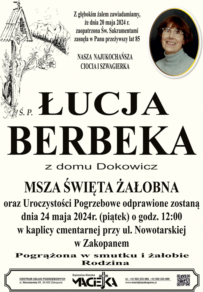 Łucja Berbeka - Nekrologi - podhale24.pl