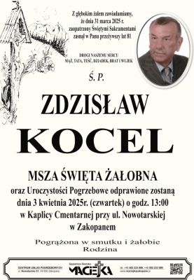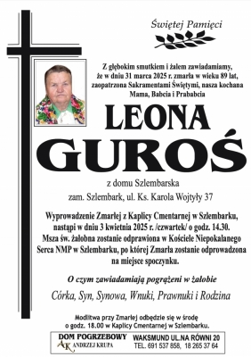 Podhale24.pl zastrzega sobie prawo do nie publikowania wspomnień, w szczególności tych nie związanych z profilem działu nekrologi, zawierających wulgaryzmy, wzywających do zachowań niezgodnych z prawem, obrażających osoby publiczne i prywatne, obrażających inne narodowości, rasy, religie itd, oraz te, bez możliwości telefonicznej lub mailowej weryfikacji ich autora.