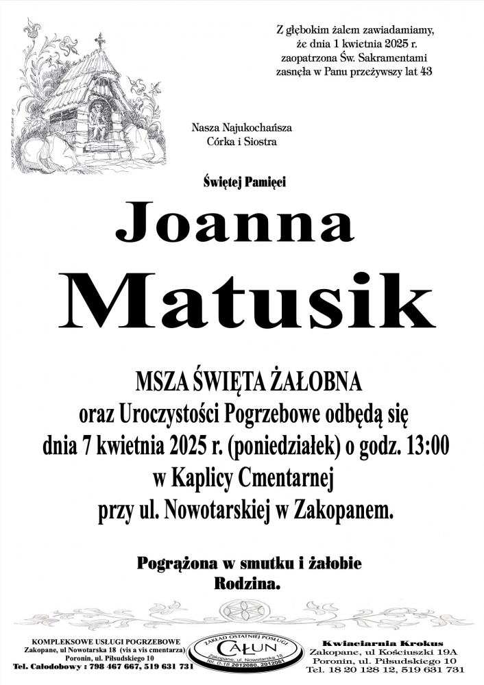 Joanna Matusik - Nekrologi - podhale24.pl