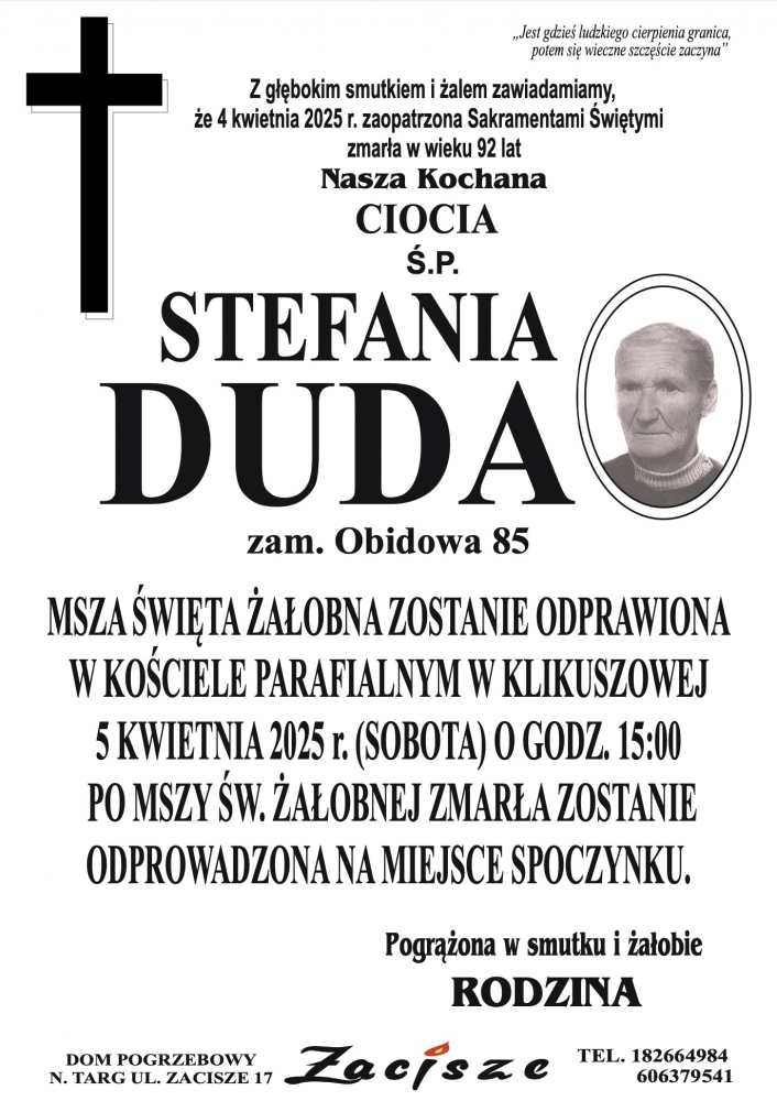 Podhale24.pl zastrzega sobie prawo do nie publikowania wspomnień, w szczególności tych nie związanych z profilem działu nekrologi, zawierających wulgaryzmy, wzywających do zachowań niezgodnych z prawem, obrażających osoby publiczne i prywatne, obrażających inne narodowości, rasy, religie itd, oraz te, bez możliwości telefonicznej lub mailowej weryfikacji ich autora.