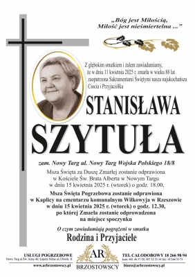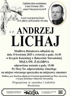 Podhale24.pl zastrzega sobie prawo do nie publikowania wspomnień, w szczególności tych nie związanych z profilem działu nekrologi, zawierających wulgaryzmy, wzywających do zachowań niezgodnych z prawem, obrażających osoby publiczne i prywatne, obrażających inne narodowości, rasy, religie itd, oraz te, bez możliwości telefonicznej lub mailowej weryfikacji ich autora.