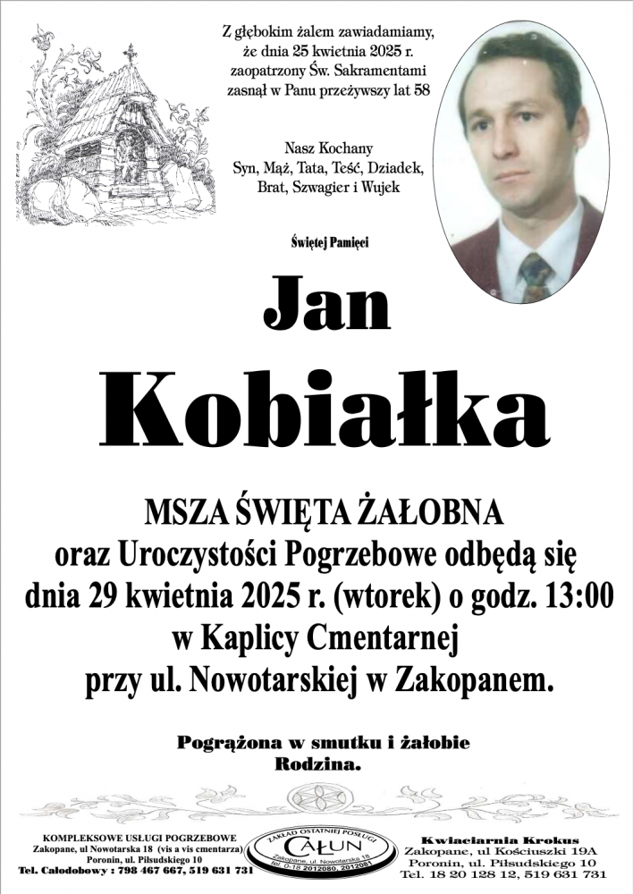 Jan Kobiałka - Nekrologi - podhale24.pl