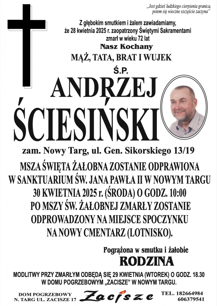 Andrzej Ściesiński - Nekrologi - podhale24.pl