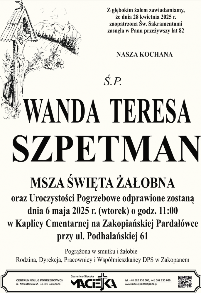 Wanda Teresa Szpetman - Nekrologi - podhale24.pl