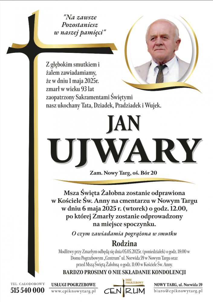 Podhale24.pl zastrzega sobie prawo do nie publikowania wspomnień, w szczególności tych nie związanych z profilem działu nekrologi, zawierających wulgaryzmy, wzywających do zachowań niezgodnych z prawem, obrażających osoby publiczne i prywatne, obrażających inne narodowości, rasy, religie itd, oraz te, bez możliwości telefonicznej lub mailowej weryfikacji ich autora.
