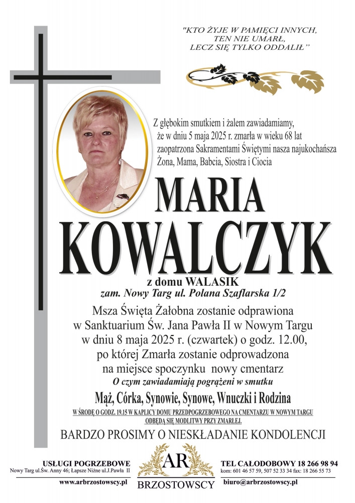 Maria Kowalczyk - Nekrologi - podhale24.pl
