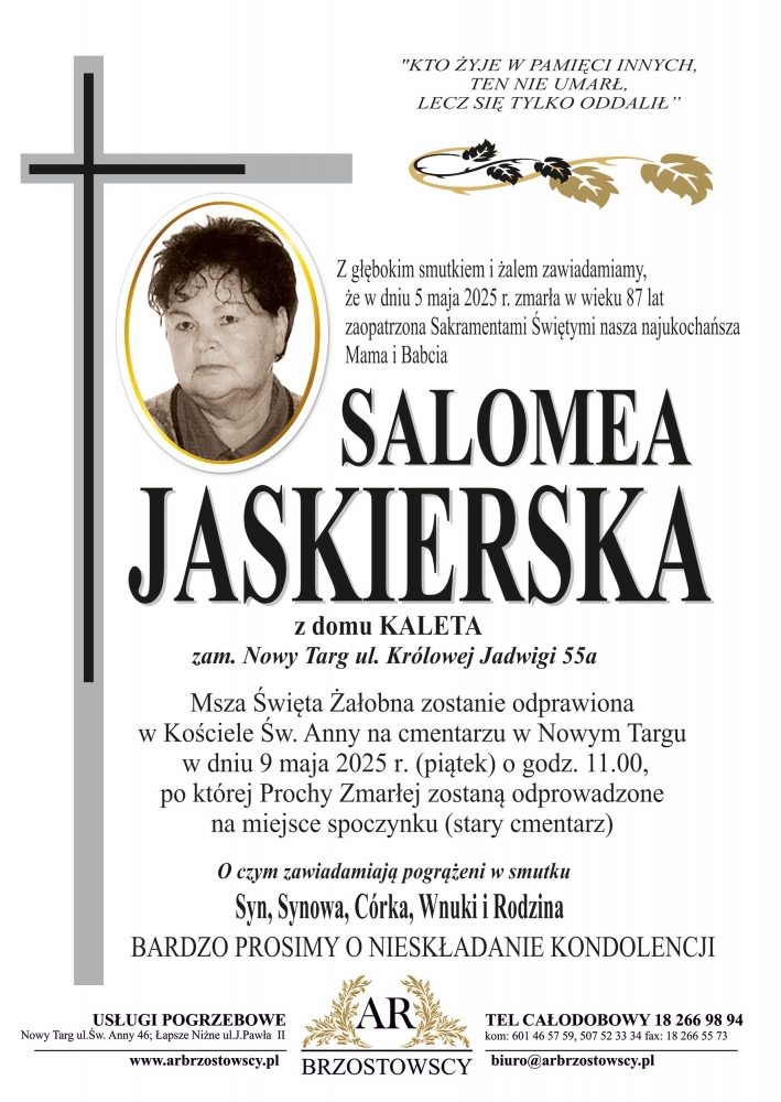 Salomea Jaskierska - Nekrologi - podhale24.pl