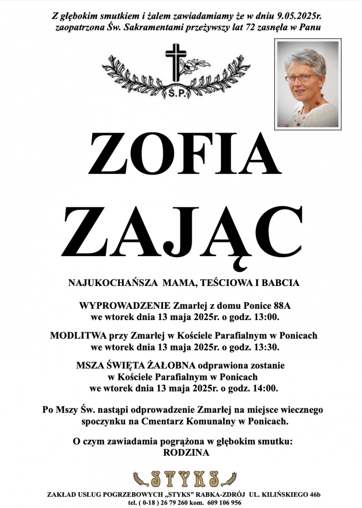 Podhale24.pl zastrzega sobie prawo do nie publikowania wspomnień, w szczególności tych nie związanych z profilem działu nekrologi, zawierających wulgaryzmy, wzywających do zachowań niezgodnych z prawem, obrażających osoby publiczne i prywatne, obrażających inne narodowości, rasy, religie itd, oraz te, bez możliwości telefonicznej lub mailowej weryfikacji ich autora.