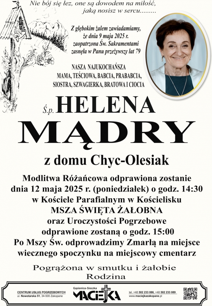 Podhale24.pl zastrzega sobie prawo do nie publikowania wspomnień, w szczególności tych nie związanych z profilem działu nekrologi, zawierających wulgaryzmy, wzywających do zachowań niezgodnych z prawem, obrażających osoby publiczne i prywatne, obrażających inne narodowości, rasy, religie itd, oraz te, bez możliwości telefonicznej lub mailowej weryfikacji ich autora.