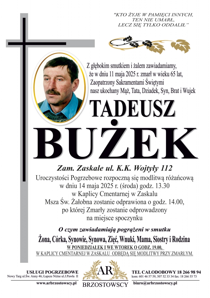 Tadeusz Bużek - Nekrologi - podhale24.pl