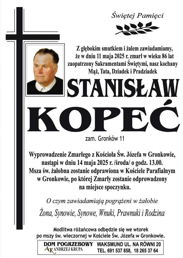 Stanisław Kopeć - Nekrologi - podhale24.pl