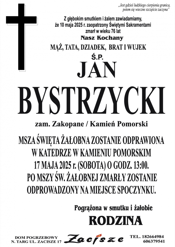 Jan Bystrzycki - Nekrologi - podhale24.pl