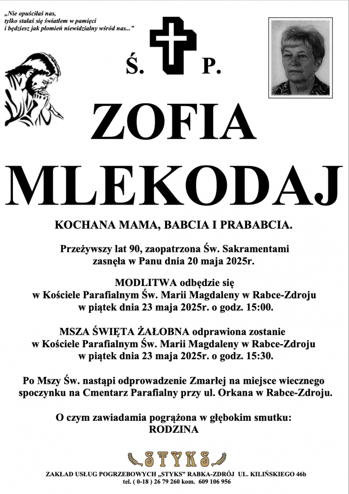 Zofia Mlekodaj - Nekrologi - podhale24.pl