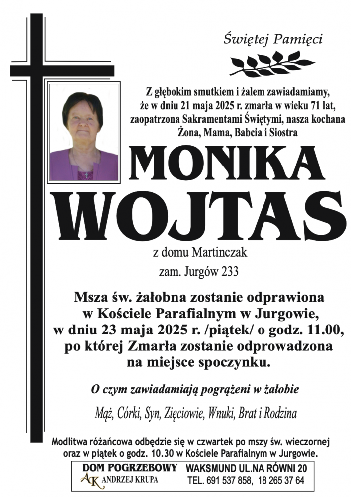 Monika Wojtas - Nekrologi - podhale24.pl