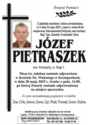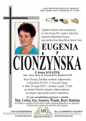 Podhale24.pl zastrzega sobie prawo do nie publikowania wspomnień, w szczególności tych nie związanych z profilem działu nekrologi, zawierających wulgaryzmy, wzywających do zachowań niezgodnych z prawem, obrażających osoby publiczne i prywatne, obrażających inne narodowości, rasy, religie itd, oraz te, bez możliwości telefonicznej lub mailowej weryfikacji ich autora.