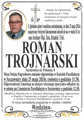 Podhale24.pl zastrzega sobie prawo do nie publikowania wspomnień, w szczególności tych nie związanych z profilem działu nekrologi, zawierających wulgaryzmy, wzywających do zachowań niezgodnych z prawem, obrażających osoby publiczne i prywatne, obrażających inne narodowości, rasy, religie itd, oraz te, bez możliwości telefonicznej lub mailowej weryfikacji ich autora.