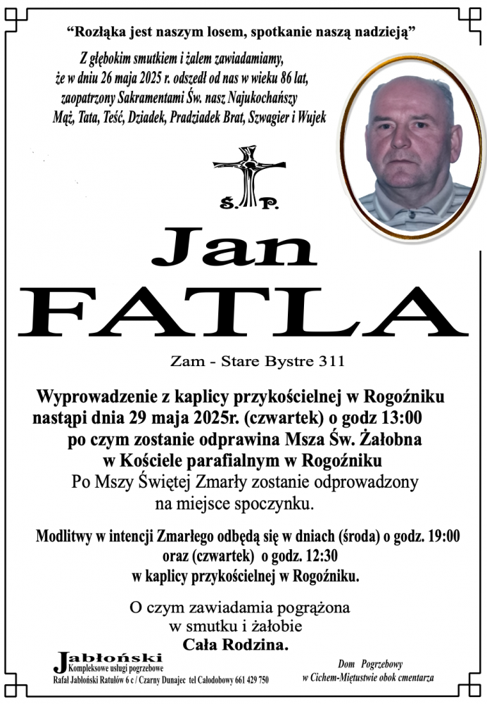 Podhale24.pl zastrzega sobie prawo do nie publikowania wspomnień, w szczególności tych nie związanych z profilem działu nekrologi, zawierających wulgaryzmy, wzywających do zachowań niezgodnych z prawem, obrażających osoby publiczne i prywatne, obrażających inne narodowości, rasy, religie itd, oraz te, bez możliwości telefonicznej lub mailowej weryfikacji ich autora.