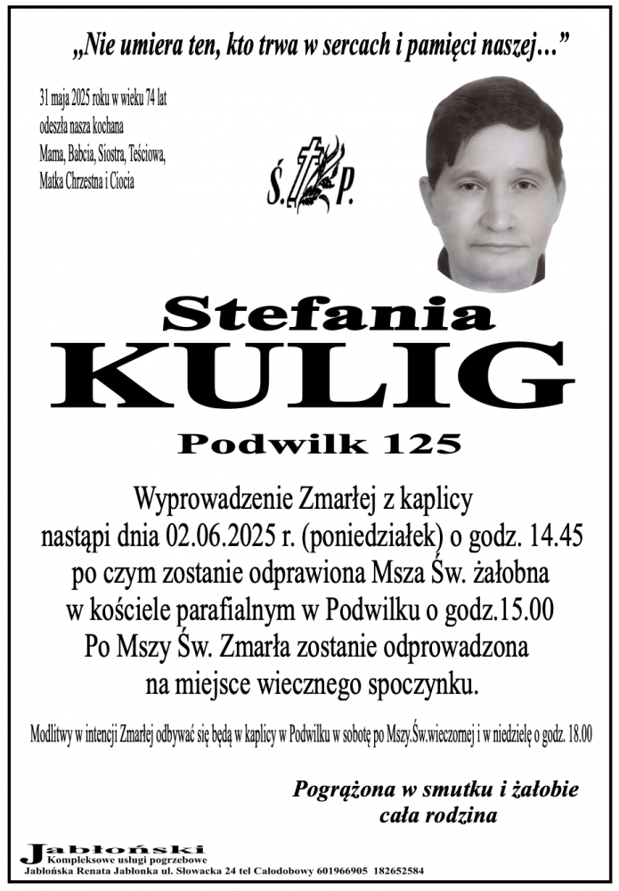 Stefania Kulig - Nekrologi - podhale24.pl
