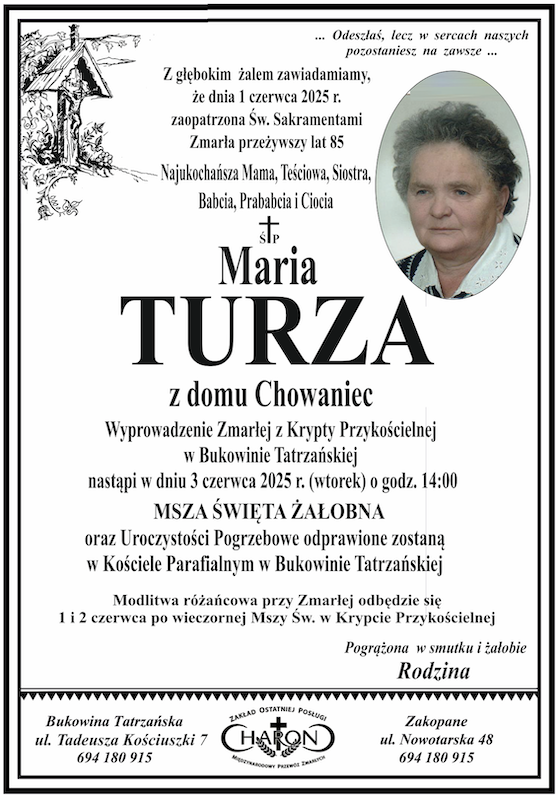 Podhale24.pl zastrzega sobie prawo do nie publikowania wspomnień, w szczególności tych nie związanych z profilem działu nekrologi, zawierających wulgaryzmy, wzywających do zachowań niezgodnych z prawem, obrażających osoby publiczne i prywatne, obrażających inne narodowości, rasy, religie itd, oraz te, bez możliwości telefonicznej lub mailowej weryfikacji ich autora.