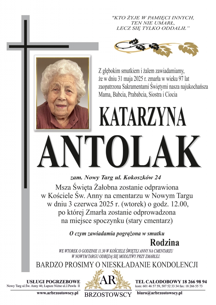 Katarzyna Antolak - Nekrologi - podhale24.pl