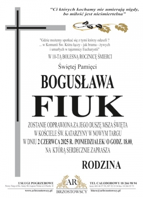 Podhale24.pl zastrzega sobie prawo do nie publikowania wspomnień, w szczególności tych nie związanych z profilem działu nekrologi, zawierających wulgaryzmy, wzywających do zachowań niezgodnych z prawem, obrażających osoby publiczne i prywatne, obrażających inne narodowości, rasy, religie itd, oraz te, bez możliwości telefonicznej lub mailowej weryfikacji ich autora.