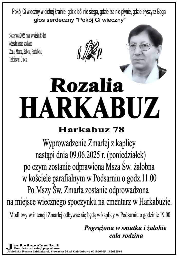 Rozalia Harkabuz - Nekrologi - podhale24.pl