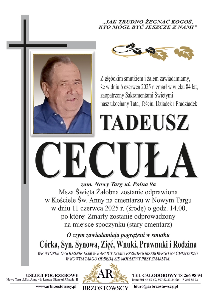Tadeusz Cecuła - Nekrologi - podhale24.pl