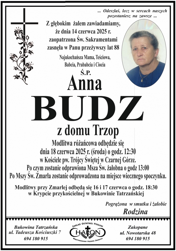 Anna Budz - Nekrologi - podhale24.pl