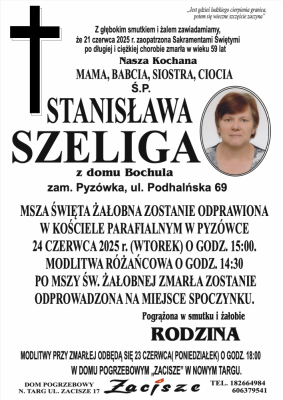 Podhale24.pl zastrzega sobie prawo do nie publikowania wspomnień, w szczególności tych nie związanych z profilem działu nekrologi, zawierających wulgaryzmy, wzywających do zachowań niezgodnych z prawem, obrażających osoby publiczne i prywatne, obrażających inne narodowości, rasy, religie itd, oraz te, bez możliwości telefonicznej lub mailowej weryfikacji ich autora.