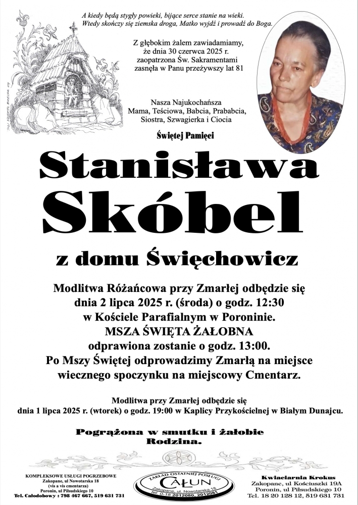 Stanisława Skóbel - Nekrologi - podhale24.pl