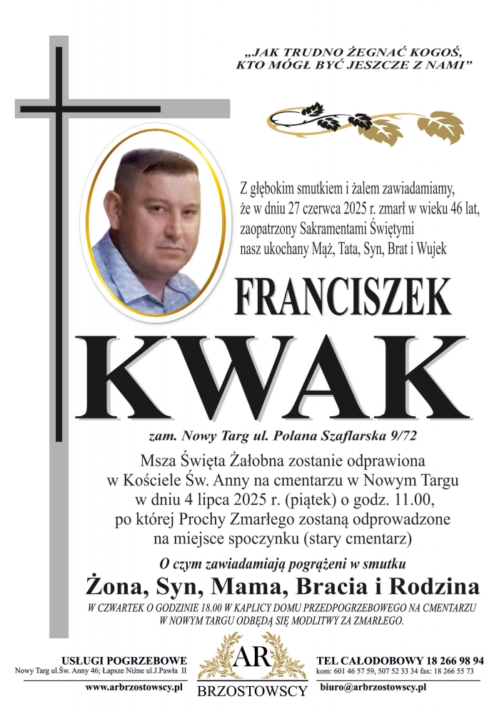 Franciszek Kwak - Nekrologi - podhale24.pl