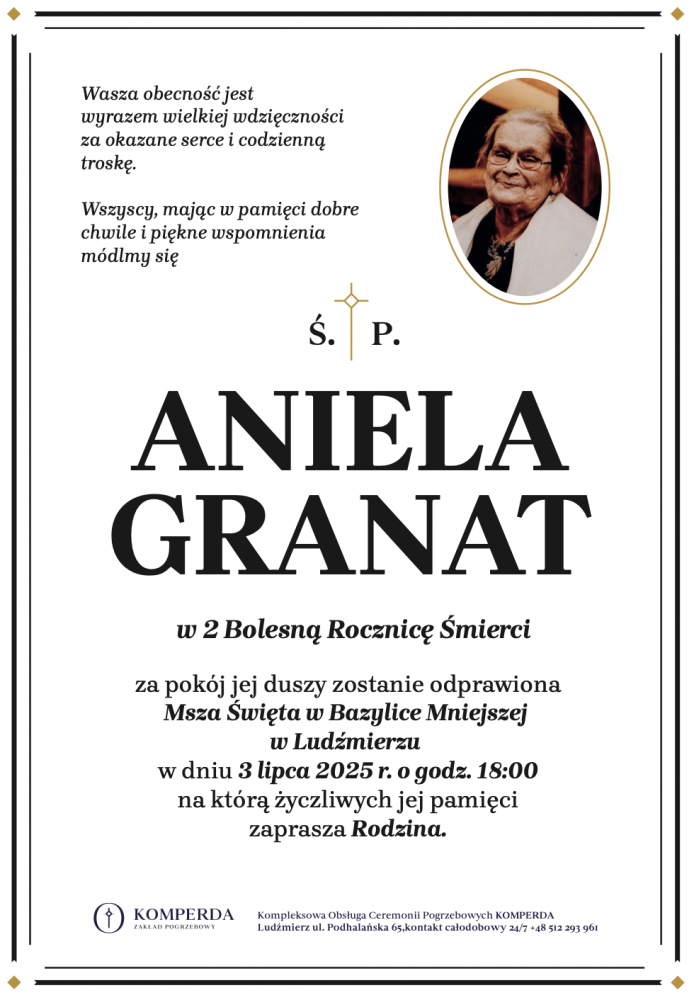 Aniela Granat - Nekrologi - podhale24.pl